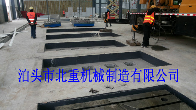 我公司為西門子電機(jī)制造的6件2500*4000電機(jī)試驗(yàn)平臺安裝中.電機(jī)試驗(yàn)平臺表面帶有T型槽,方便固定實(shí)驗(yàn)設(shè)備.T型槽工作臺采用預(yù)埋的安裝形式,這樣的優(yōu)點(diǎn)是:1.不會出現(xiàn)平臺在實(shí)驗(yàn)震動下的位移.2.減小震動輻射范圍.3.使試驗(yàn)平臺的壽命和實(shí)驗(yàn)效果大大提高.